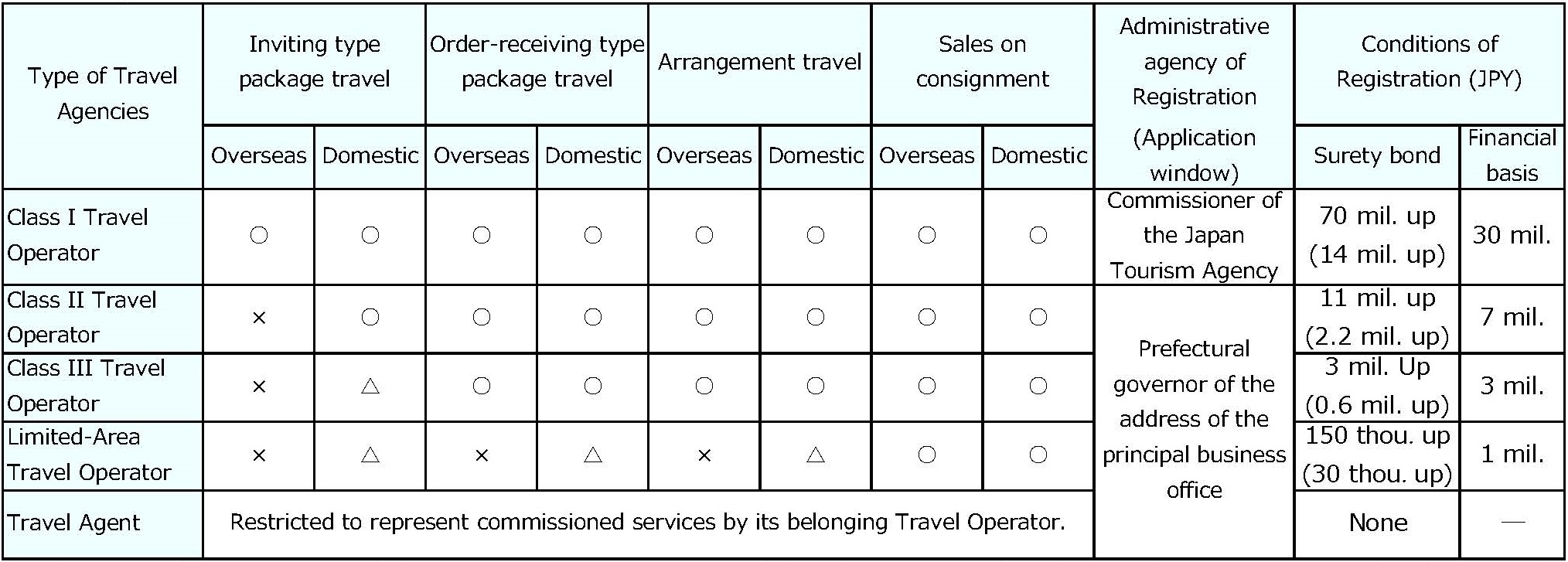 Answer:Pleae kindly refere the following table (As of June 7th., Reiwa 4 (2022)). ■Travel Agents in Japan