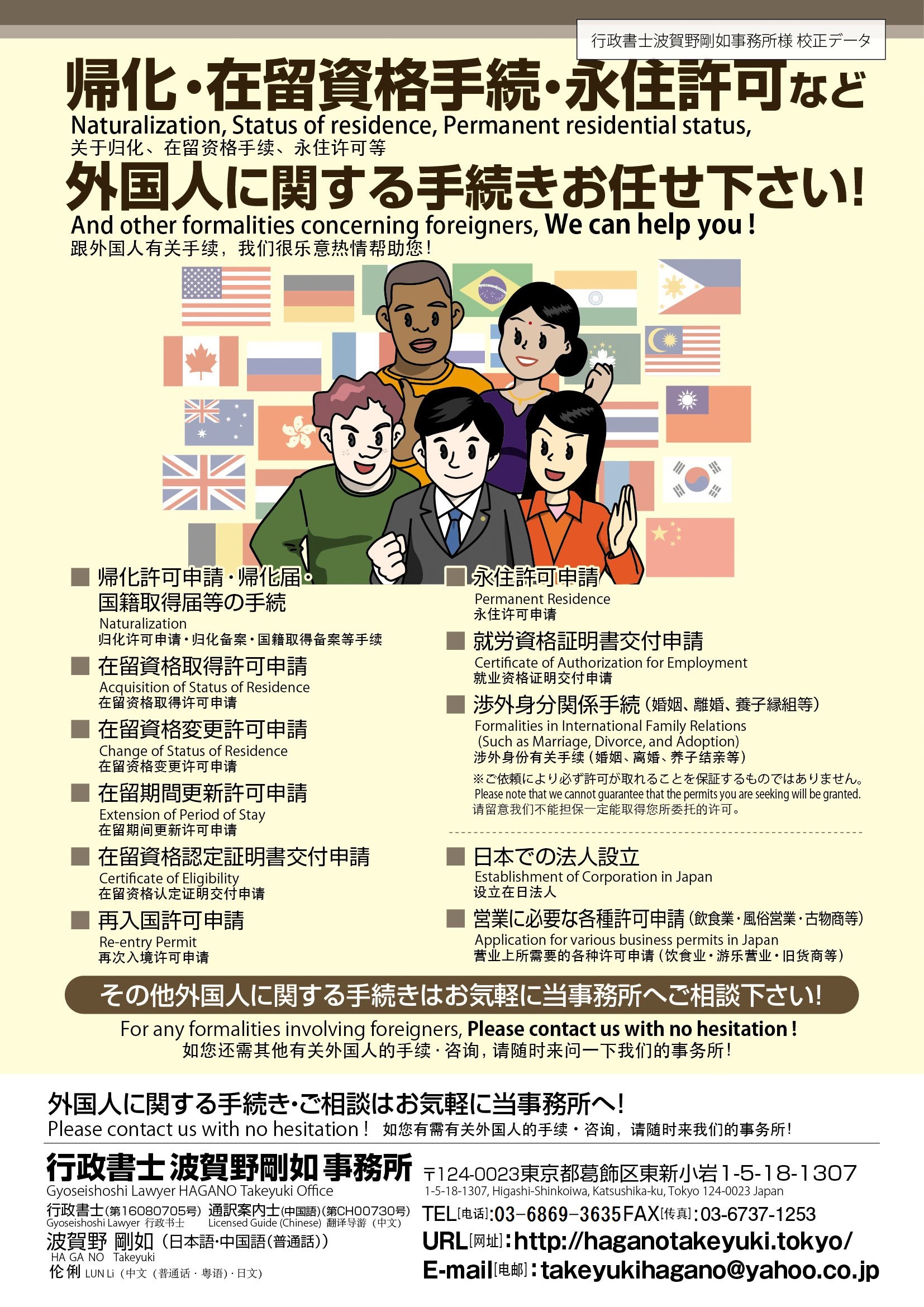 행정사 하가노타케유키 사무소 (사무소팜플렛은 여기입니다.) |
