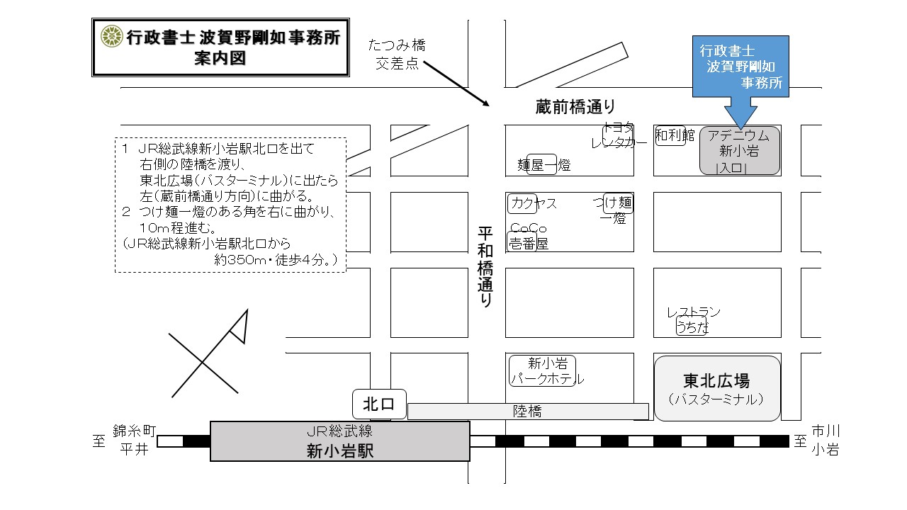 【行政書士波賀野剛如事務所】は、葛飾を拠点として、東京・埼玉・千葉・神奈川等のエリアを中心に活動しております。