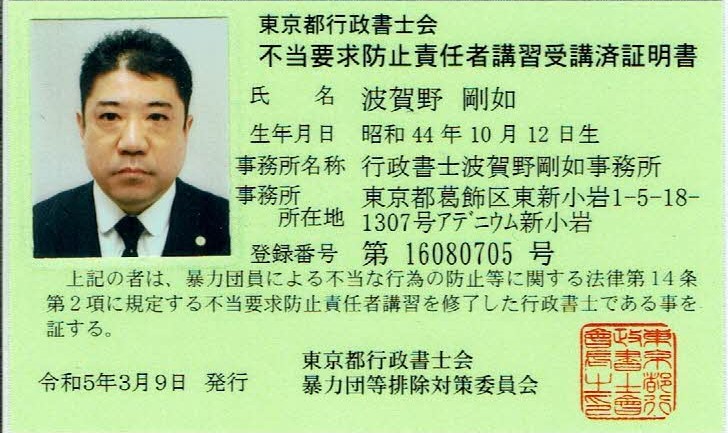 東京・千葉・埼玉で中国人・台湾人・香港人・マカオ人のビザ申請(在留資格)・永住・帰化申請手続きの相談 【行政書士波賀野剛如事務所】 プライバシーポリシー