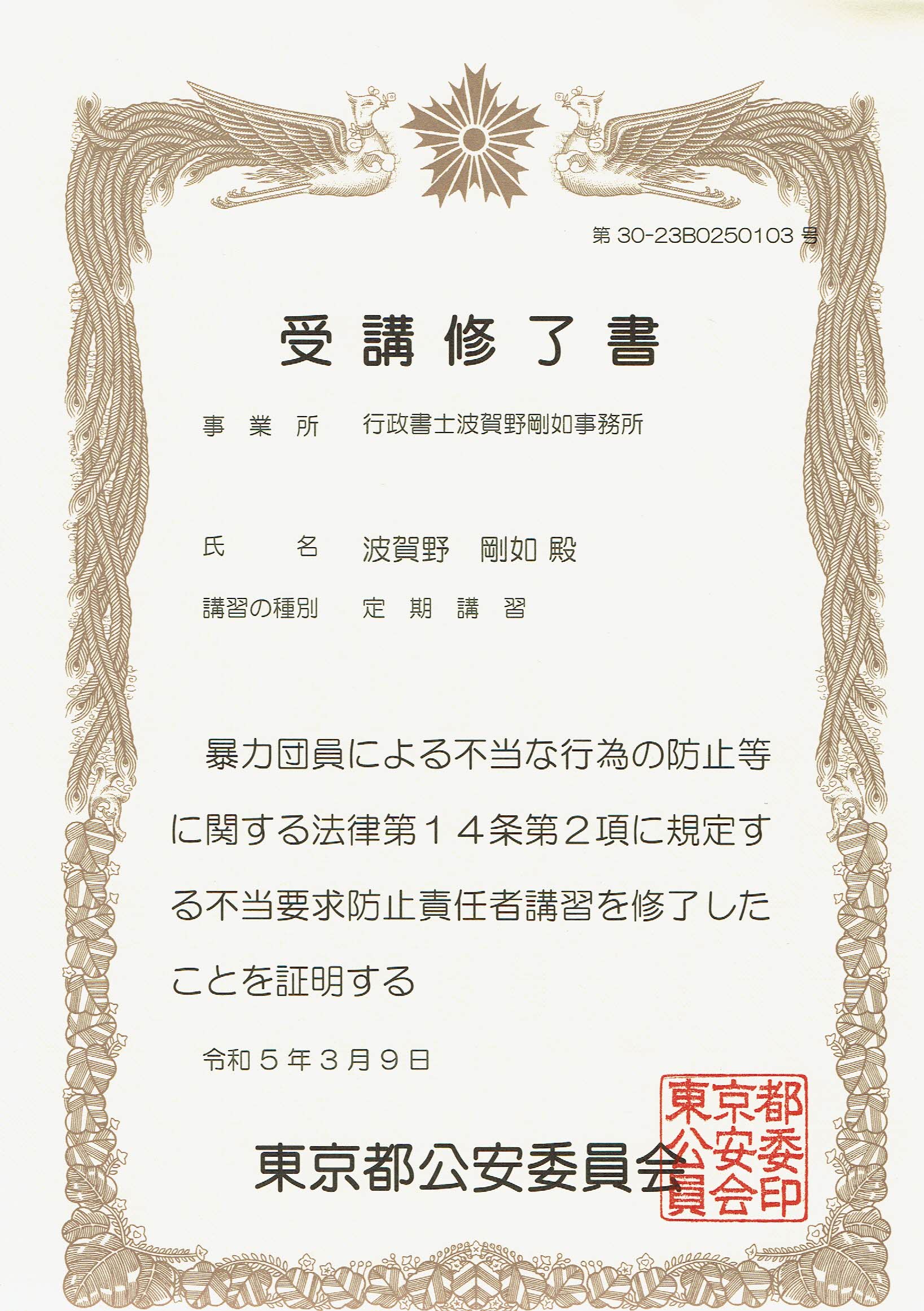 非常感謝向行政書士波賀野剛如事務所的諮詢。
